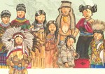 2008Schoolprent voor de bovenbouw van het basisonderwijs bij het thema 'Noord- Amerika' met kinderen van verschillende indianenstammen.