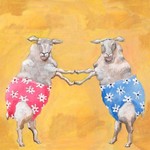 2008Illustraties, prent, schapen, dansen, ondergoed