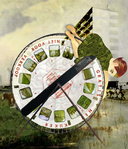 2015Geduld op papier 12: Wie kan er nou een lage zon die door de mist heen het bos uitlicht, een paddenstoel in het warme herfstlicht of het ontluikende groen van het voorjaar weerstaan? Maar na een flinke klim uitkijkend over de bergen vind ik dat wel mooi maar ben vooral blij dat ik niet verder omhoog hoef te klauteren. Wanneer ik vanuit het oosten voorbij Utrecht rij en die coulissen uit het landschap verdwijnen en de lucht weer ruimte krijgt kom ik thuis. In die wereld met de lage horizon en heb ik het gevoel dat ik weer kan ademhalen. In mijn landschap is het waterpeil zo hoog dat er geen prikkeldraad afrasteringen rond weilanden nodig zijn en is er heel veel lucht, lucht die altijd in beweging is en waarin je bijna kunt verdwijnen. Mijn lagere school, de Notenkraker, stond aan het Bachplein in Schiedam en wij gingen wonen in het tweede huis dat werd opgeleverd van de nieuwbouwwijk “Woudhoek”. Mijn moeder klaagde over het vieze water en de stank van Botlek. Ik herinner me de knotwilgen, het fluitenkruid en de polder die ik zich voor ons huis uitspreidde. Toen ik een werk ging maken voor Landschap in mijn Hoofd werd dat landschap uit mijn kindertijd de inspiratiebron. In mijn collage heb ik gebruik gemaakt van het schilderij: Koeien in de polder van Cornelus Westerbeek en een foto van J.F.H. Roovers van het Bachplein uit 1969. Samen vormen ze het decor van de herinneringen in mijn hoofd. Dit is mijn bjdrage aan de expositie 'Landschap in mijn Hoofd' van St. Beeldruimte.
