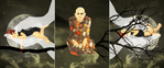 Digitale collages op canvas en/of papier die reageren op het werk van andere kunstenaars of maatschappelijke ontwikkelingen.